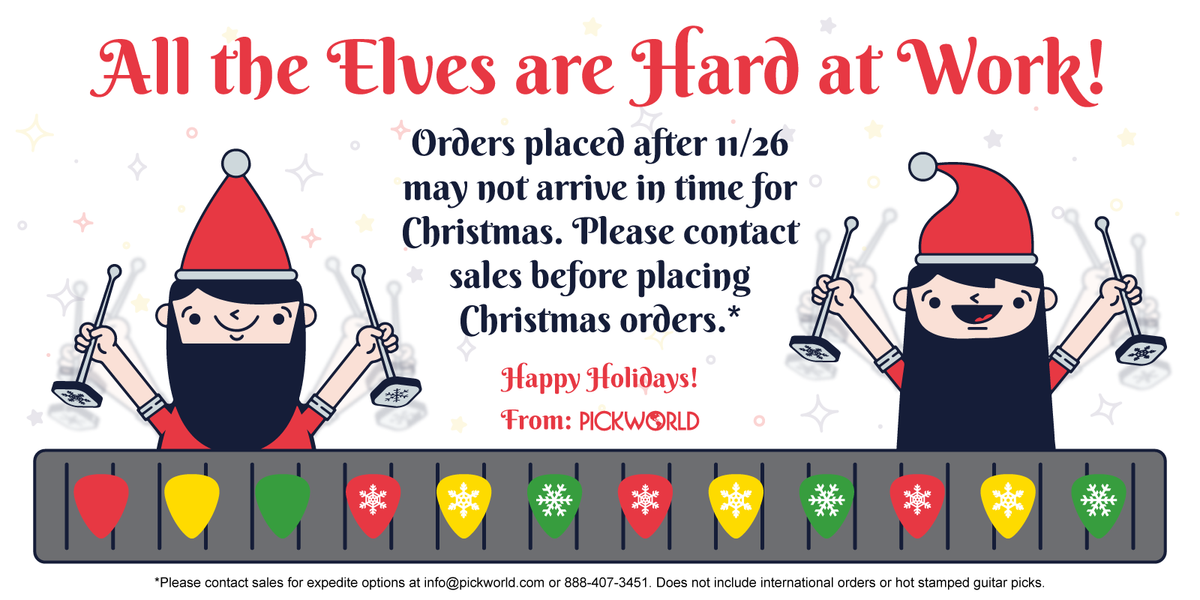 So whether you're looking for picks to throw out to your adoring fans, need a cool way to promote your company or event, or looking for some rockin’ favors for a wedding or birthday, PickWorld is here to help. Our minimum order is only 100 picks (25 picks for text only), and we can handle orders of 100,000 guitar picks or more as well.